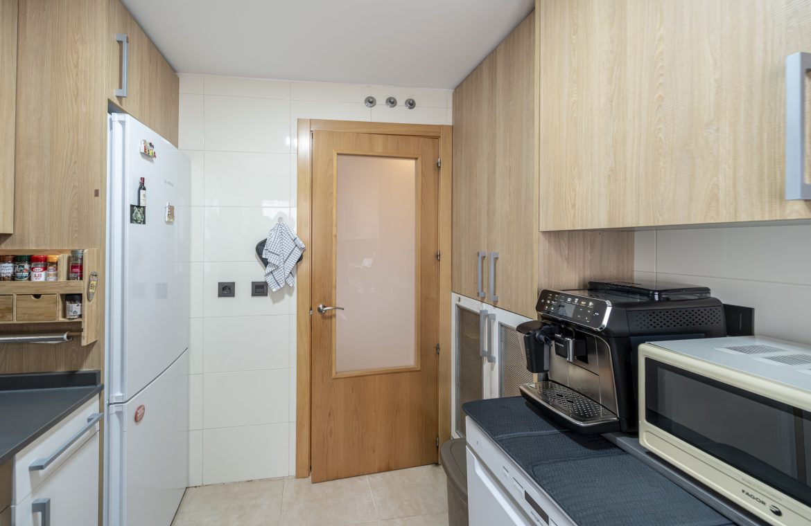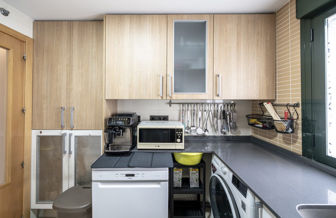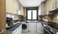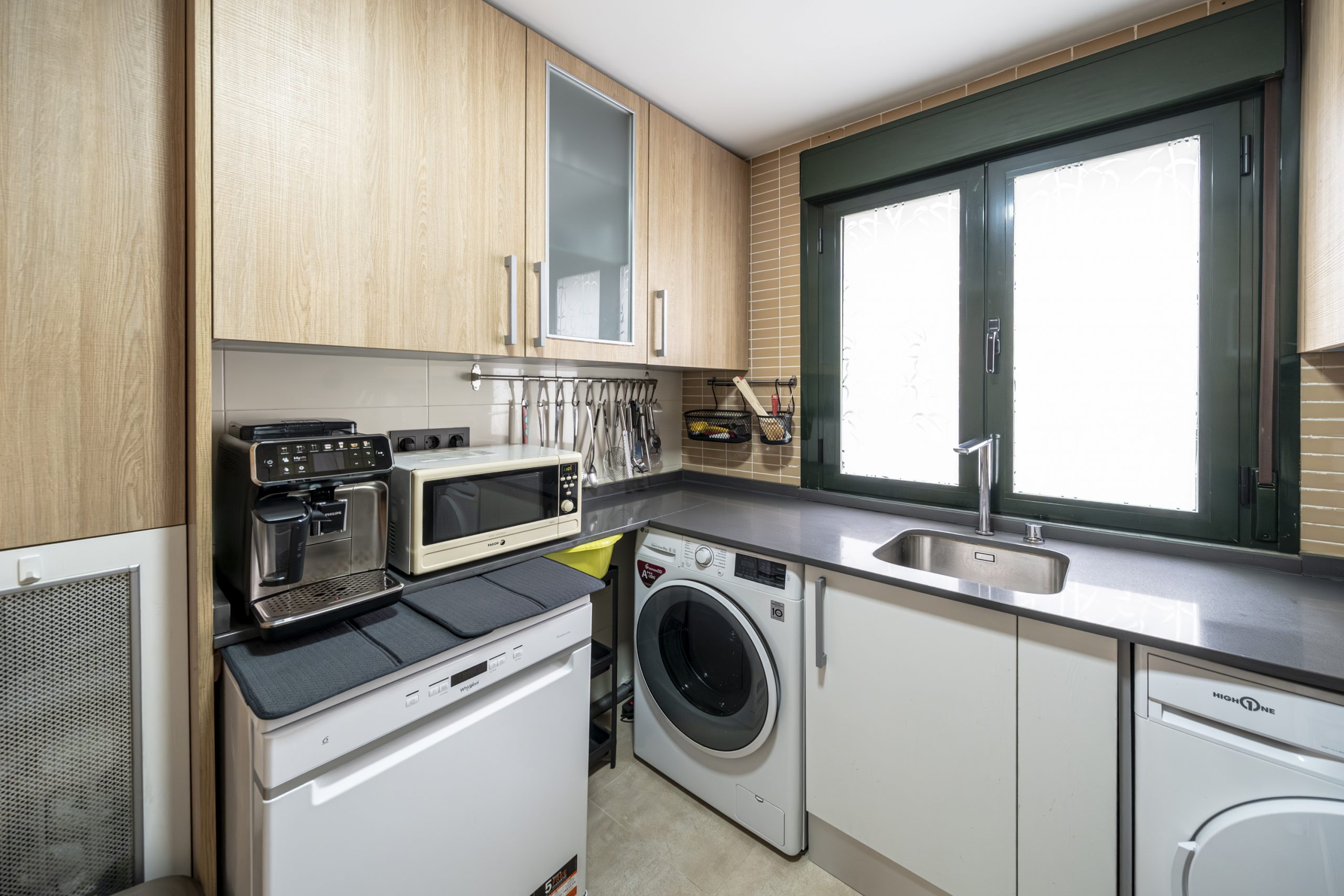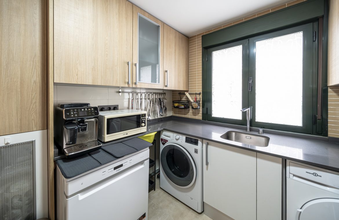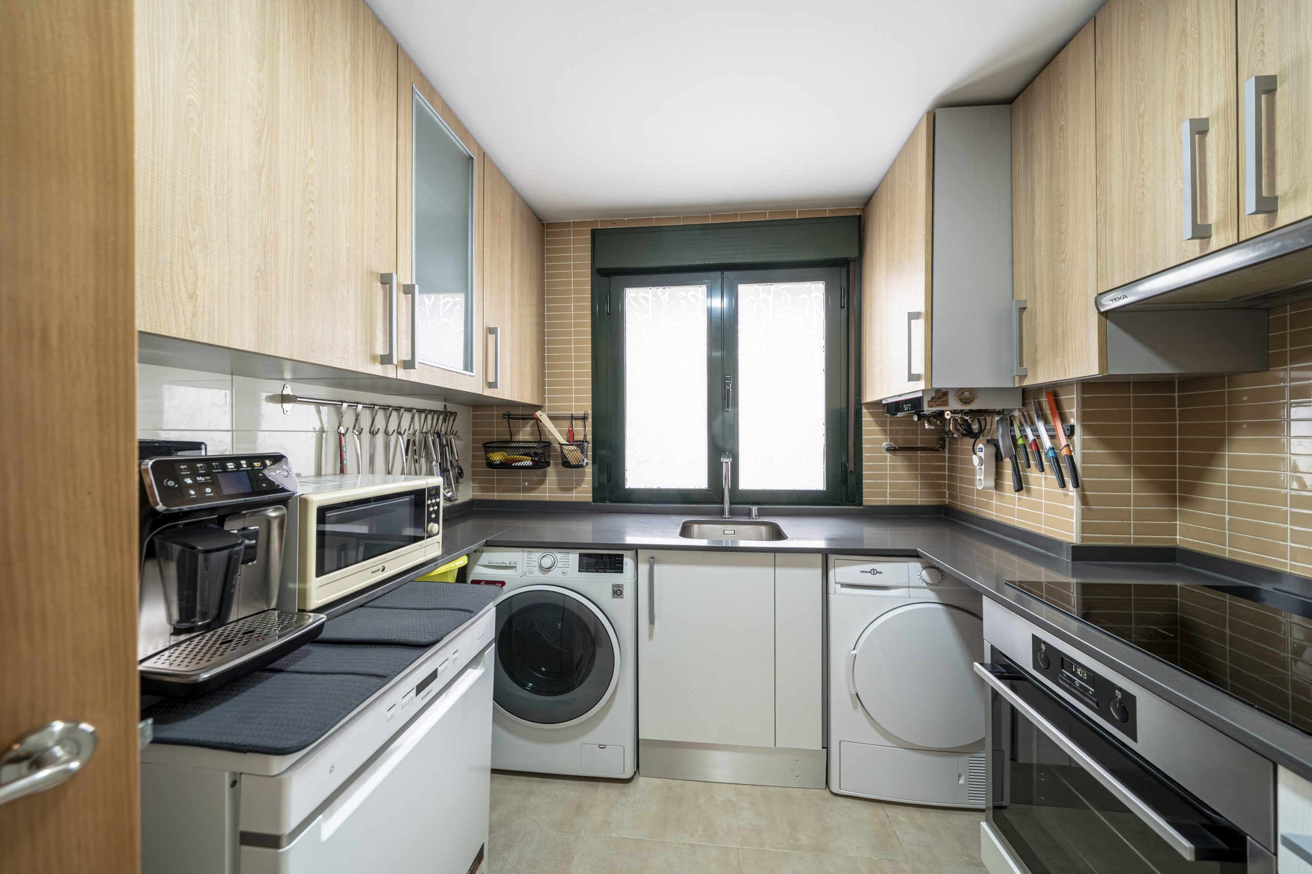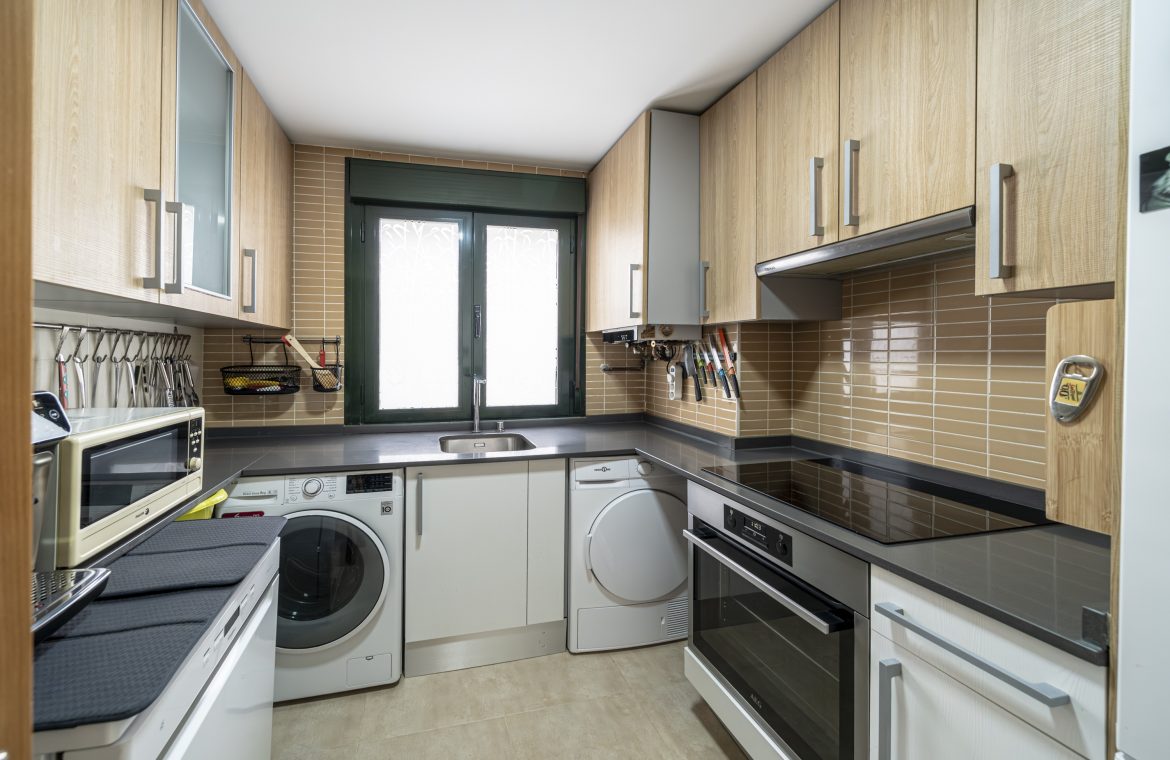 La vivienda está realizada en excelentes calidades, puerta blindada, carpintería de aluminio, puertas de roble, bomba de frio y calor por Split, suelo de gres, calefacción por Gas Natural, cocina equipada con encimera de granito, nevera, vitrocerámica, lavadora, secadora lavavajillas y horno, armarios empotrados y dos plazas de garaje.