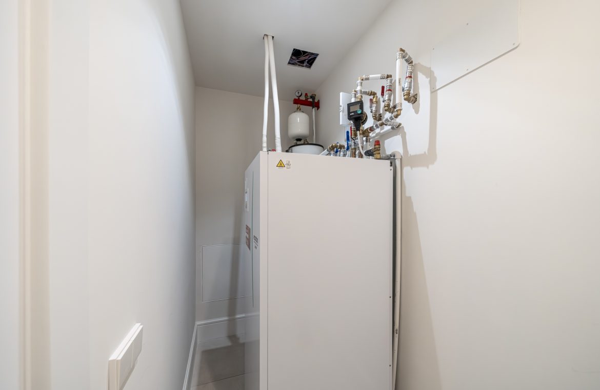 La vivienda dispone de tres amplios dormitorios, todos ellos con cuarto de baño completo en suite, diseñados como auténticos espacios de descanso y bienestar. Los techos altos refuerzan la sensación de amplitud y realzan la calidad arquitectónica del inmueble.