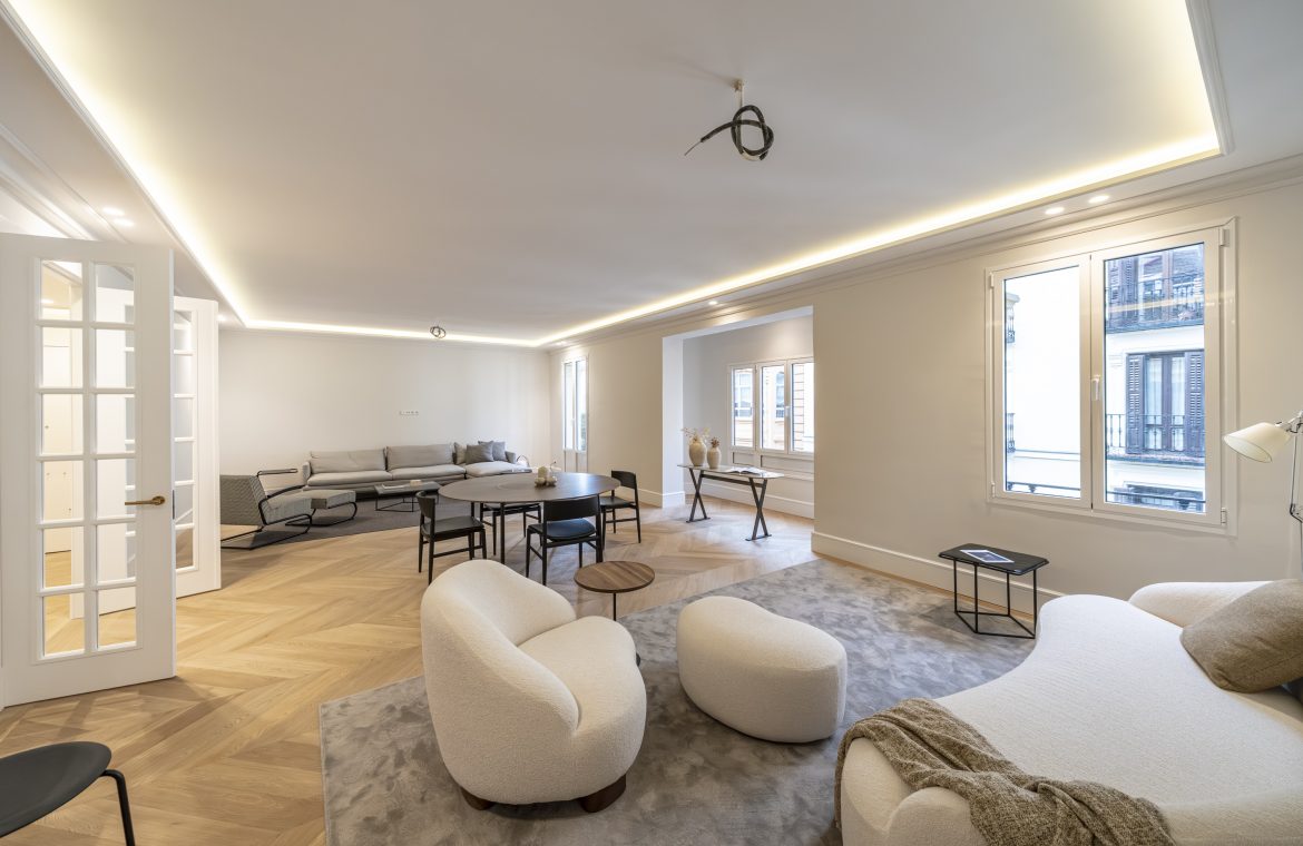 En una de las zonas más emblemáticas y cotizadas de Madrid, en pleno Barrio de las Cortes, se encuentra esta extraordinaria vivienda de lujo, diseñada para quienes buscan excelencia, confort y diseño sin concesiones.