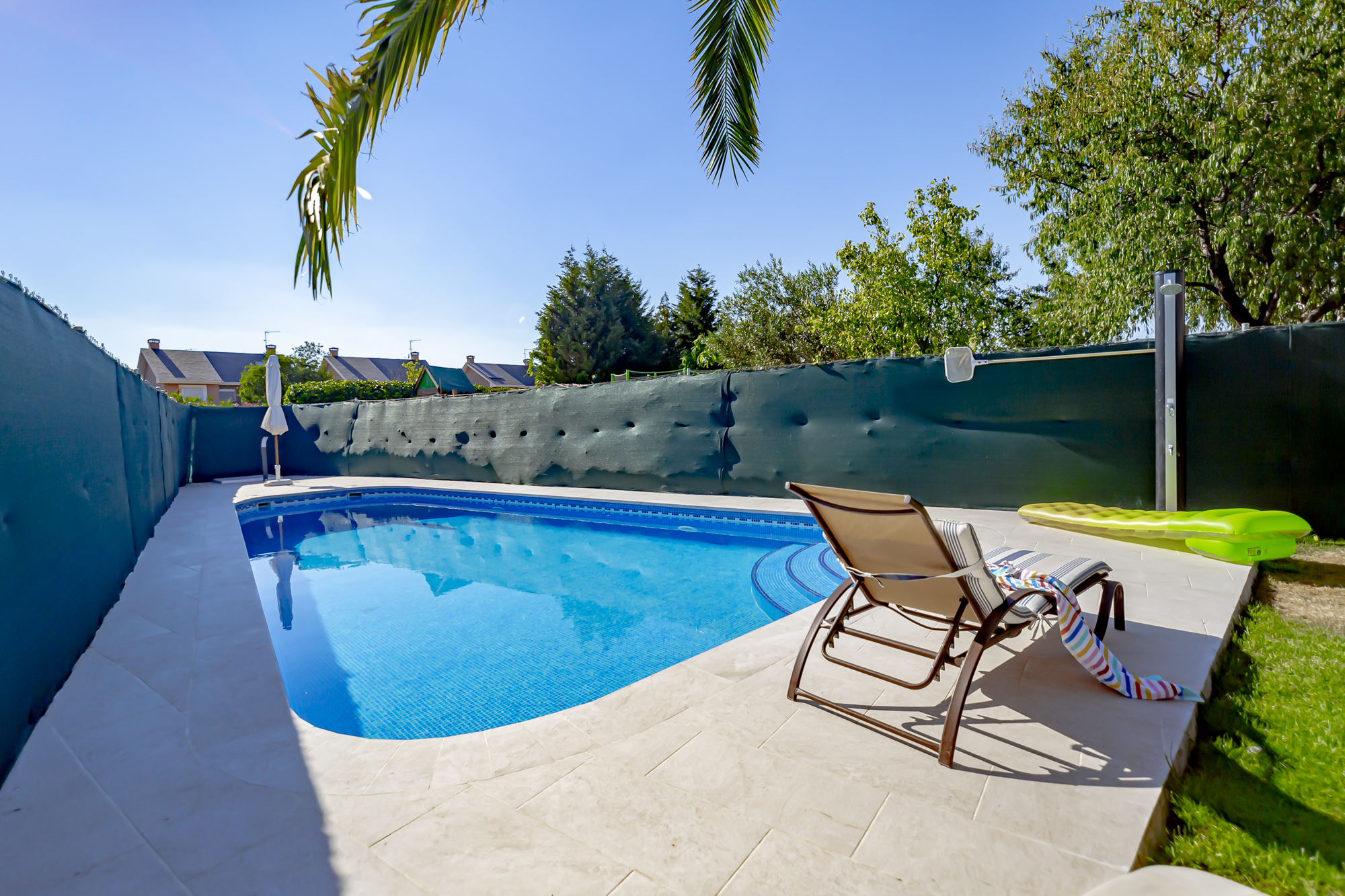Impresionante chalet de lujo en la avenida principal del Señorío de Illescas. El inmueble consta de cuatro dormitorios, tres de ellos con armarios empotrados completamente vestidos y el dormitorio principal con cuarto de baño en suit, salón comedor, cocina completamente amueblada, dos cuartos de baño y un aseo, la buhardilla dispone de un dormitorio y sala de cine. También dispone de jardín con un cenador de madera, piscina propia, dos plazas de garaje y cochera.