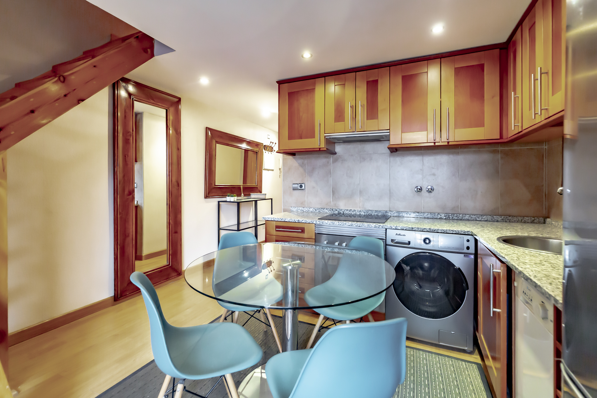 Precioso apartamento en calle Toledo, portal representativo cerca del metro Latina el piso esta muy bien cuidado, maderas nobles, entrada muy amplia, salón comedor con visitas a la calle Olmedo, vistas a la casa de campo, cuarto de baño completo, cocina americana y escalera de caracol para subir a al dormitorio.