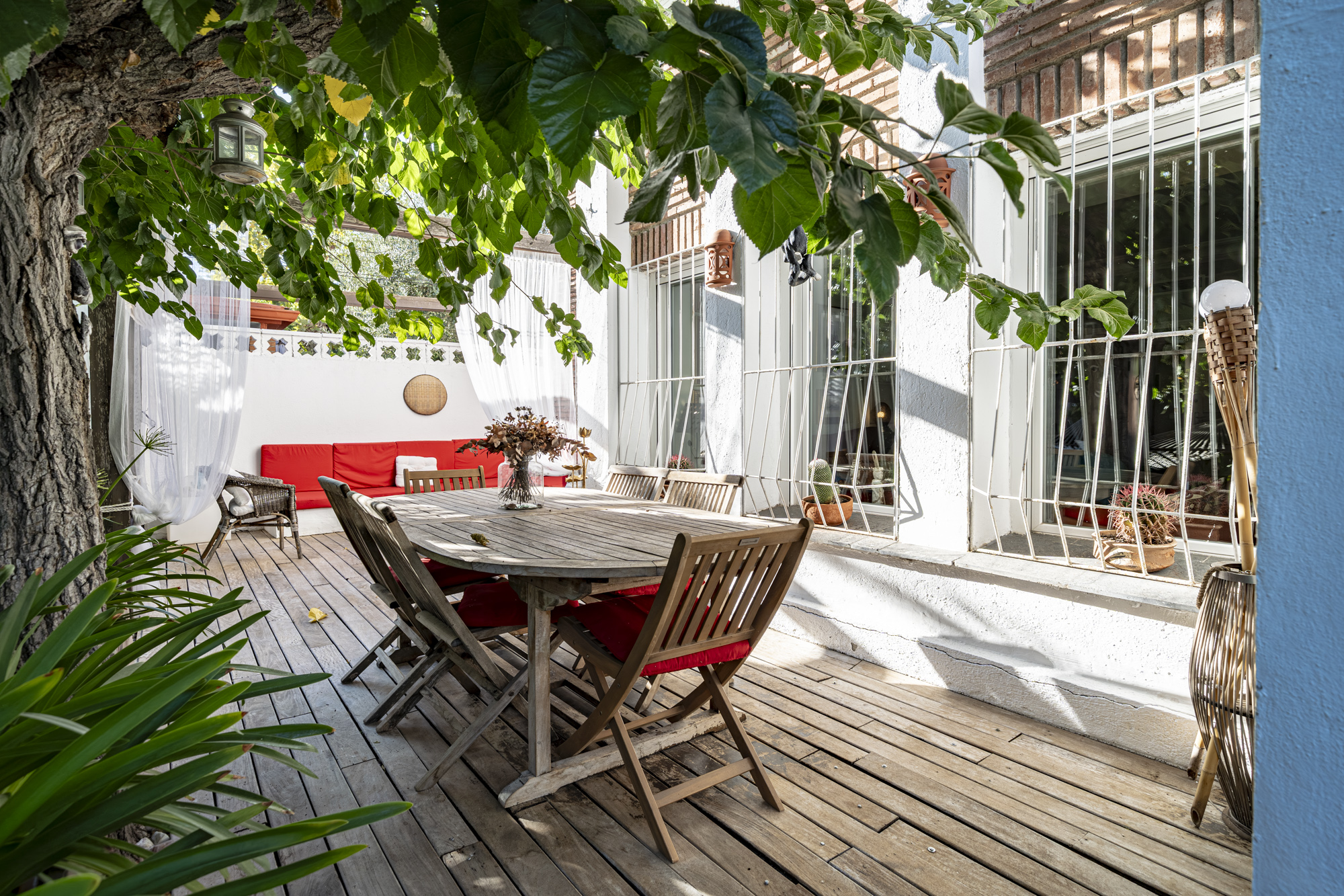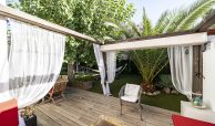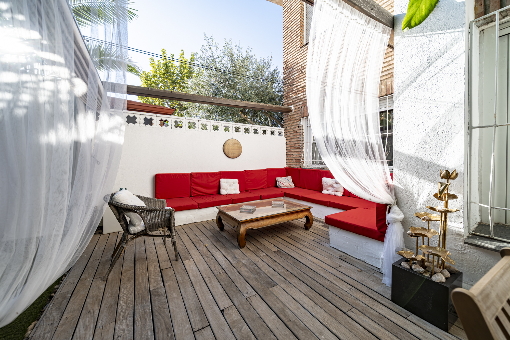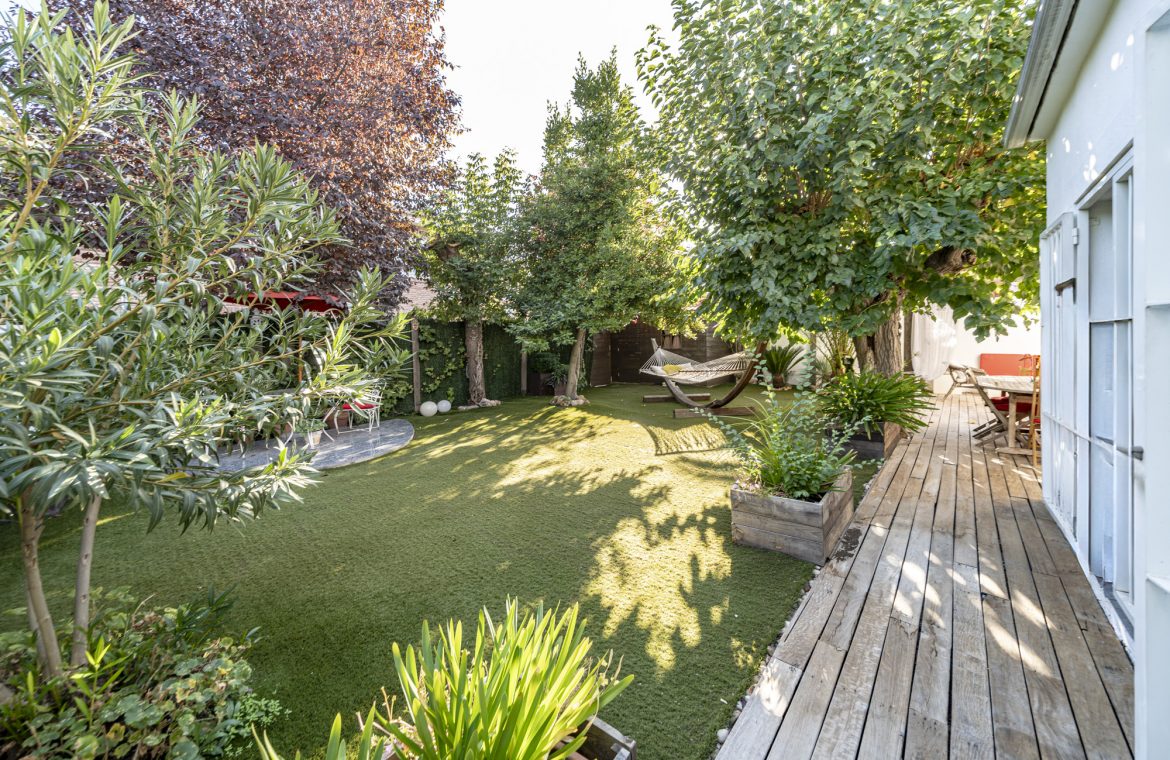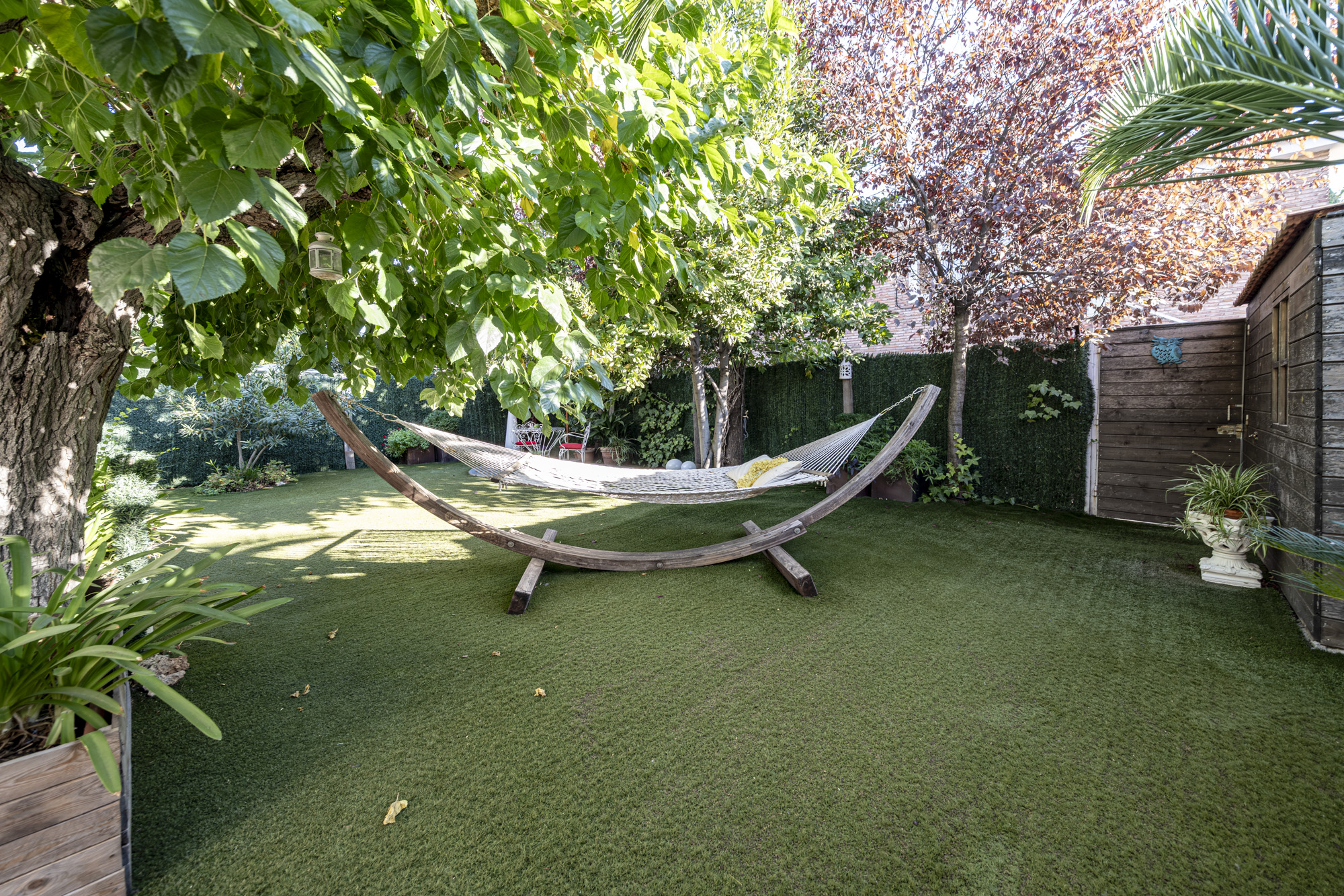 El jardín privado es el verdadero protagonista: totalmente acondicionado con rinconera, pérgola, césped artificial y zonas ajardinadas con sombra, perfecto para reuniones familiares, ocio y relax.